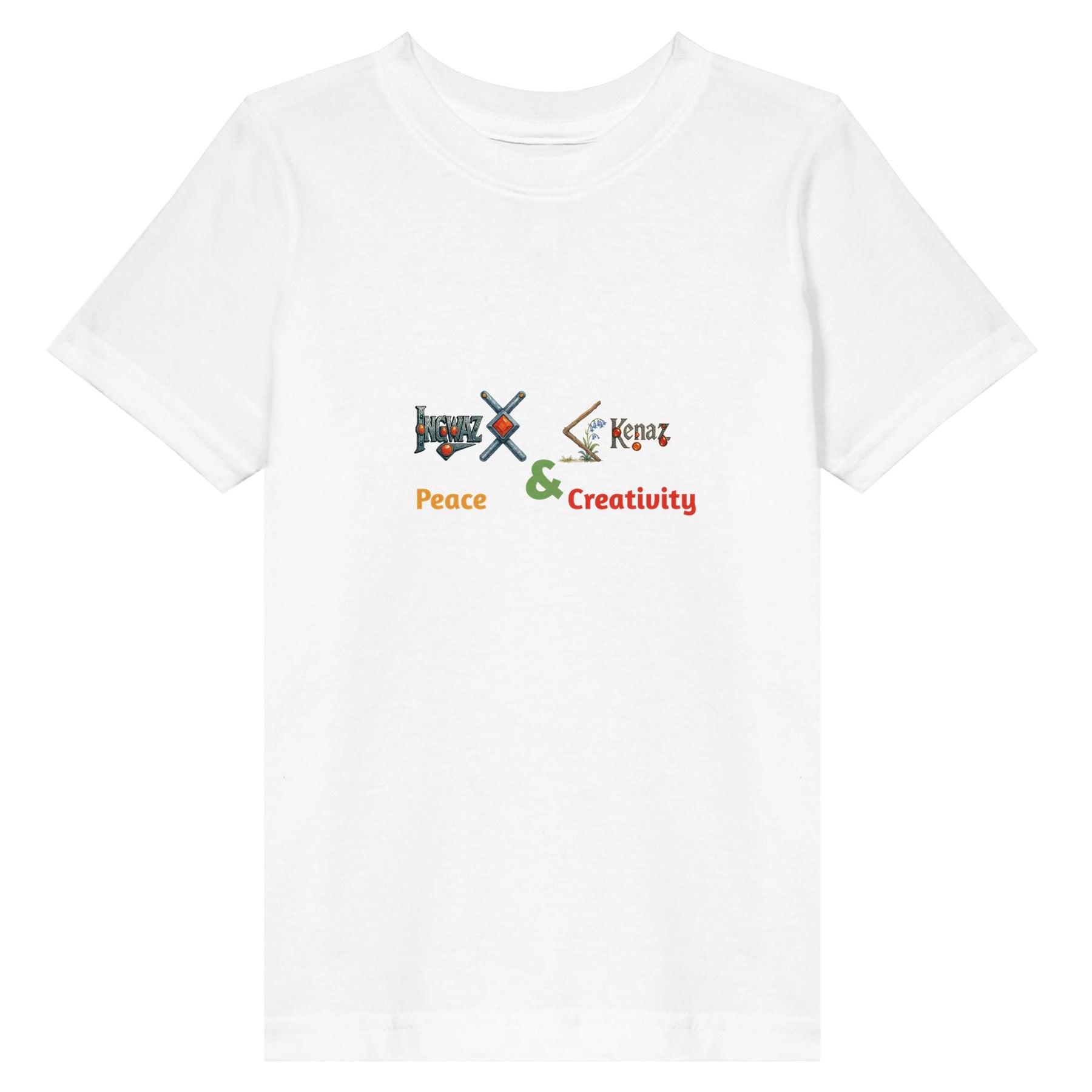 This custom RuneScope Kids Tee shows your child’s Birth Rune and Fate Rune, joined with an &, and personalized with two uplifting words that you fill in.